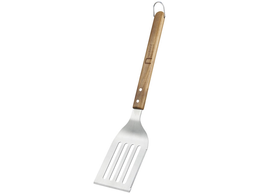 Лопатка для барбекю XL. Лопатка размера XL в простом и прочном дизайне облегчит ваши приготовления сочного стейка или отменной рыбы. При помощи зазубренного края вы сможете надрезать мясо или рыбу, чтобы убедиться хорошо ли они прожарены. Можно мыть в посудомоечной машине. Дерево акации и нержавеющая сталь.