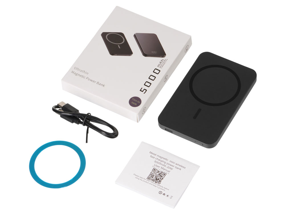 Комплектность: внешний аккумулятор, зарядный кабель Type-C, металлическое кольцо, инструкция