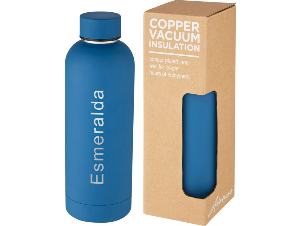 Нержавеющая медная бутылка с вакуумной изоляцией и простым дизайном. Изолированная конструкция из нержавеющей стали 18/8 предотвращает образование конденсата на внешней стороне бутылки, а модная финишная отделка порошковым напылением делает ее чрезвычайно прочной. Не содержит БФА, испытана и одобрена в соответствии с немецким законодательством о безопасности пищевых продуктов (LFGB). Проверена на содержание фталатов и одобрена для использования в соответствии с правилами REACH. Объем 500 мл. Рекомендуется мыть вручную. В коробке из переработанного картона.