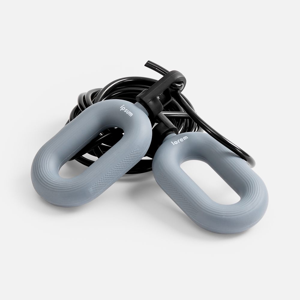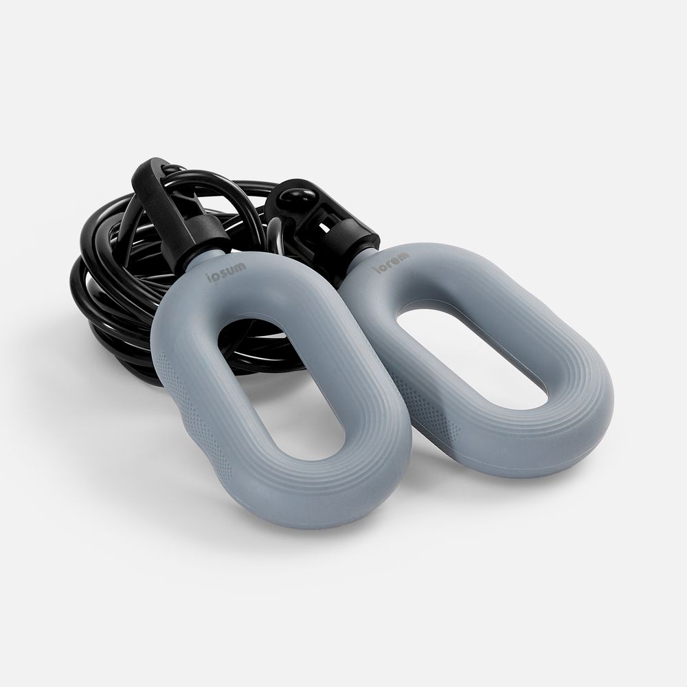 Шнур к ручкам-эспандерам крепится через пластиковый переходник с отверстиями для продевания шнура. Эспандеры выполнены из тактильно приятного силикона, обладающего высокой степенью эластичности и прочности, а широкий шнур (5 мм) — из плотного ПВХ.