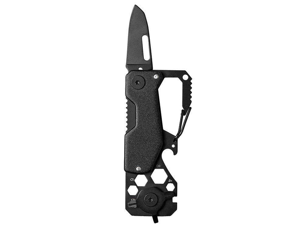 Всегда под рукой. Идеальный компаньон для ключей или кармана. Этот мультитул Roq разработан для тех, кто ценит минимализм, но не хочет терять функциональность. Складное лезвие ножа, набор гаечных ключей, три отвертки, линейка, открывалка — всё это в одном легком корпусе. Благодаря встроенному карабину, инструмент всегда пристегнут к рюкзаку или поясу, готовый к использованию в любую секунду.