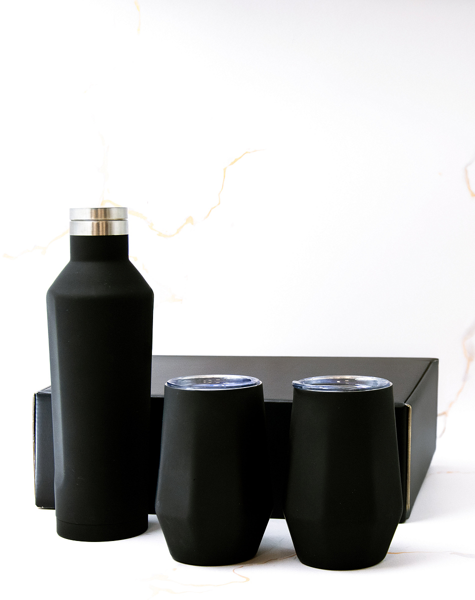 Набор Black Edition - эстетика монохрома и тактильного комфорта. Набор из термобутылки и двух коферов в едином дизайне — для тех, кто выбирает гармонию в деталях и заботится о своём комфорте.