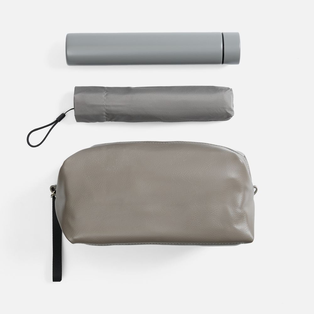 Размер: Несессер: 22х12х12 см, в сложении 23х14х4 см; зонт: длина 49 см, диаметр купола 90 см, длина в сложении 22 см; термобутылка: диаметр 4,3 см, высота 23,5 см