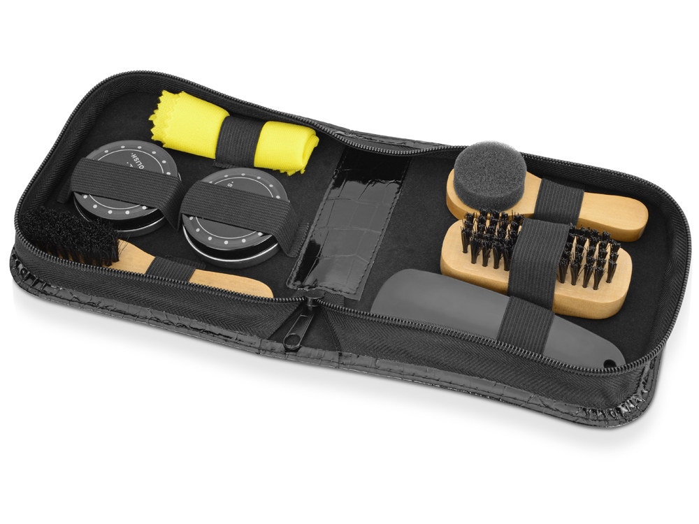 Прекрасный подарок для заботящихся о внешнем виде мужчин. Набор аксессуаров для чистки обуви, аккуратно упакованный в небольшой футляр, позволит содержать ботинки в первоклассном виде. Набор не займет много места в автомобиле.