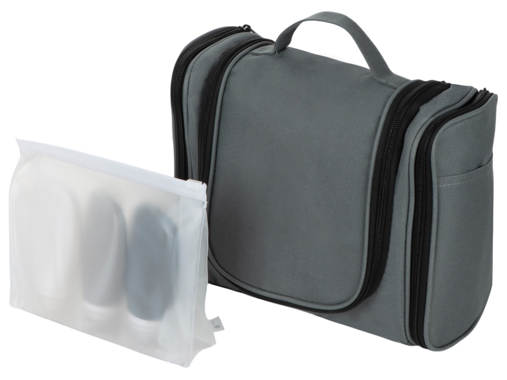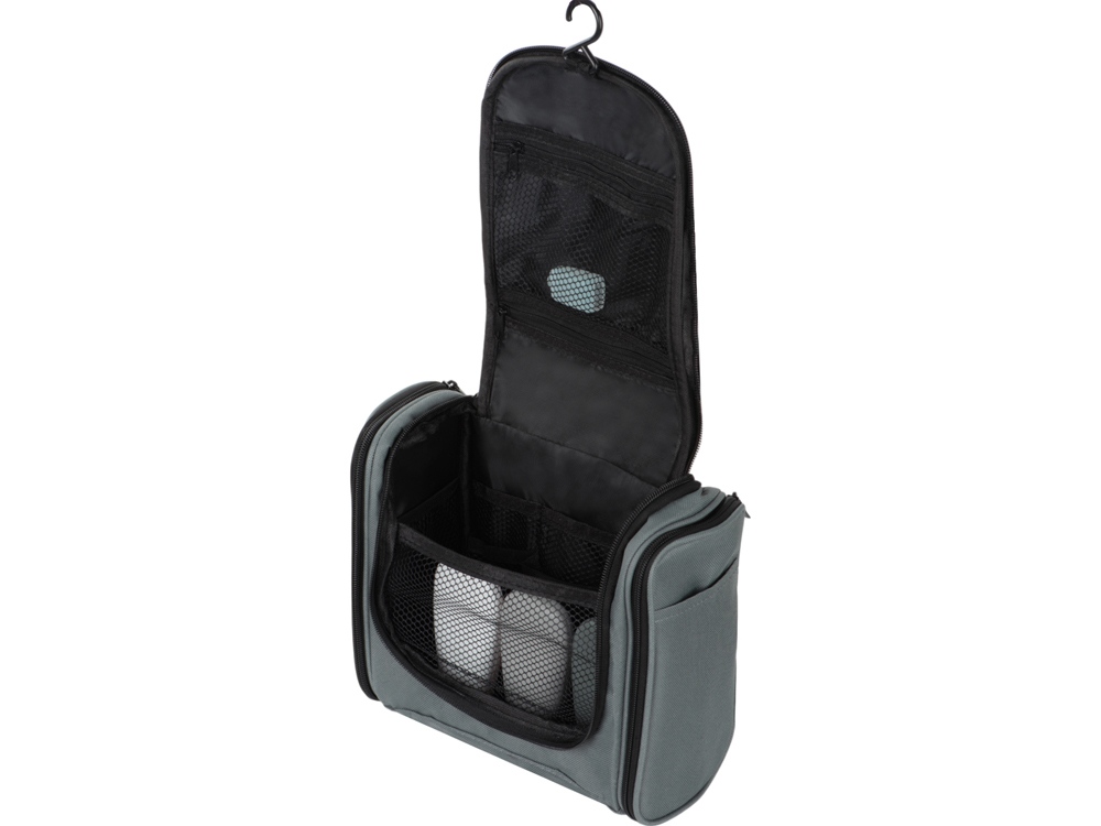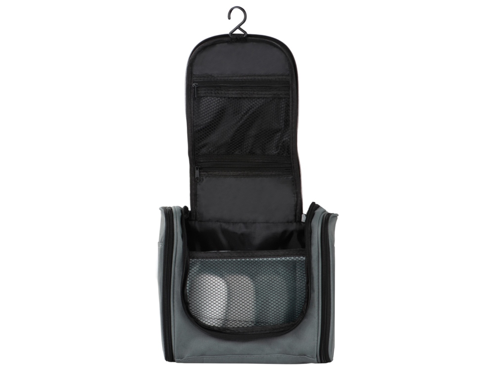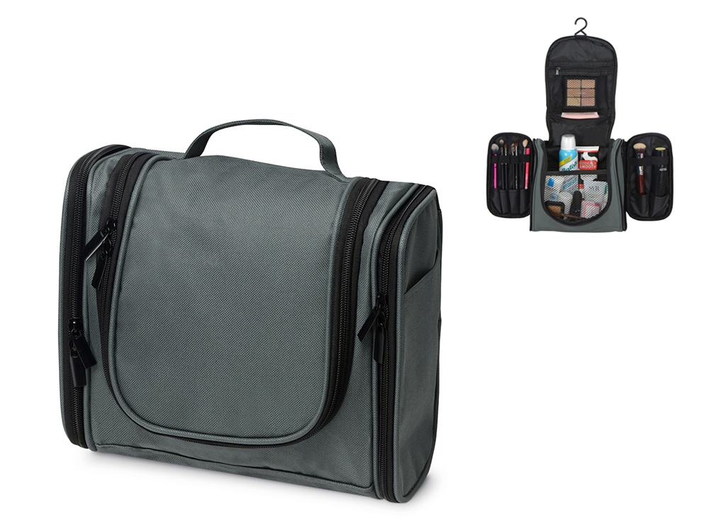 Несессер для путешествий. Эргономичный и вместительный, имеет внутренние и внешние карманы и большое отделение внутри. Оснащён ручкой для переноски и крючком для подвешивания. Нейтральный лаконичный дизайн позволяет преподнести несессер как мужчине, так и женщине;