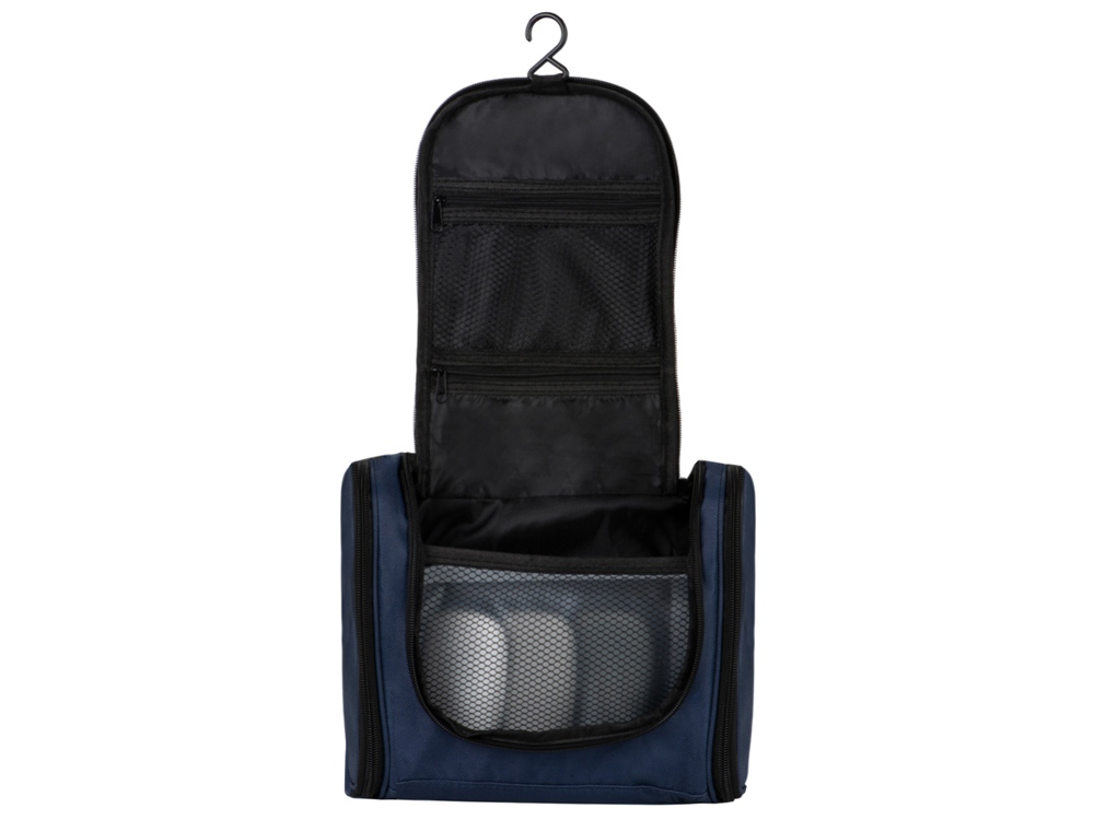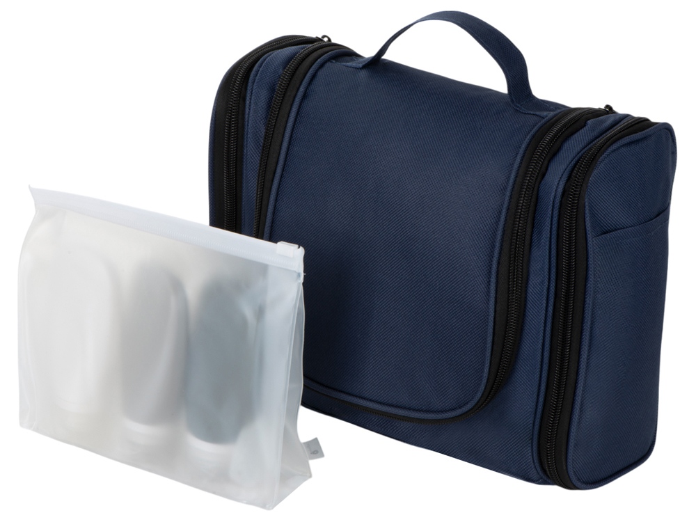 Несессер для путешествий. Эргономичный и вместительный, имеет внутренние и внешние карманы и большое отделение внутри. Оснащён ручкой для переноски и крючком для подвешивания. Нейтральный лаконичный дизайн позволяет преподнести несессер как мужчине, так и женщине;