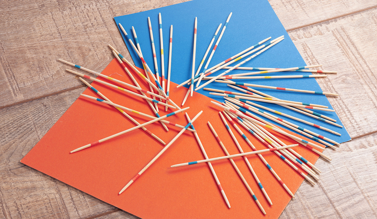 - Микадо. Игра на ловкость и внимательность для компании до 8 человек, где нужно аккуратно вытаскивать палочки, не задев остальные.