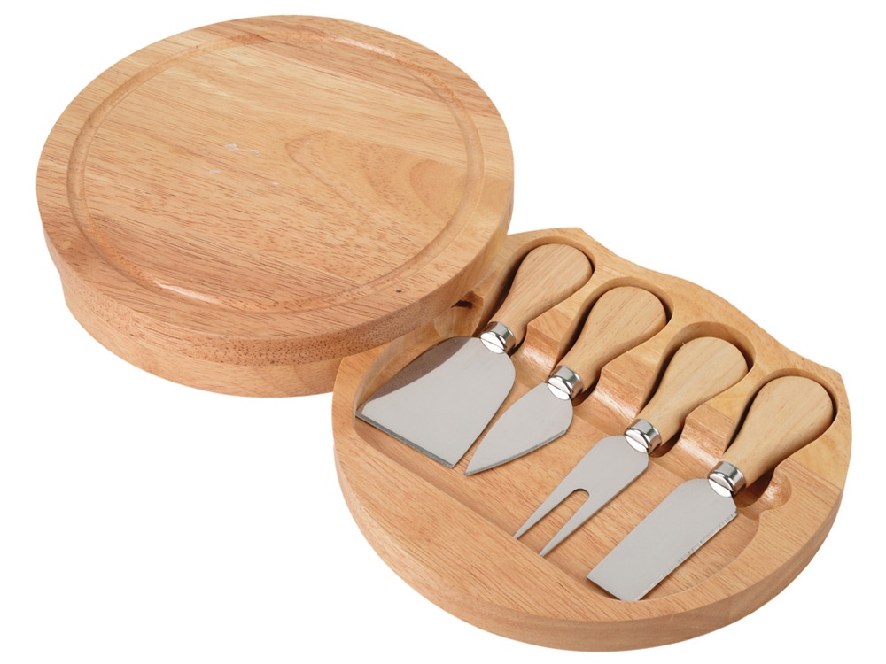 Оригинальный подарок, который наверняка пригодится любителям различных сортов сыра. Деревянный футляр, который можно использовать в качестве разделочной доски, скрывает в себе набор ножей для сыра. На ножи можно нанести гравировку.