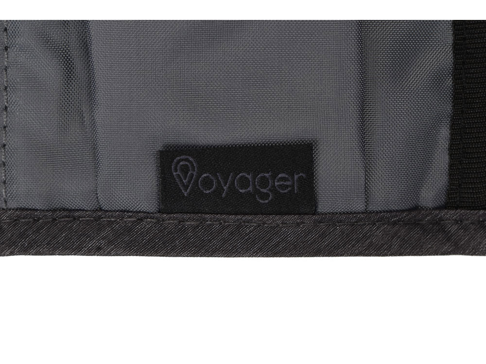 Органайзер District для электроники Voyager с множеством кармашков и отделений позволяет рассортировать девайсы, провода и другие аксессуары для техники удобным вам способом. Органайзер имеет 6 сетчатых кармашков, из них три на молнии, с бегунками, украшенными логотипом бренда. Кроме того, он имеет держатели для проводов и открытые карманы на резинке. Обложка закрывается на резинку, которая зацепляется за круглую пуговицу, и в сложенном виде органайзер весьма компактен, несмотря на свою вместительность. Благодаря форме его можно набить достаточно туго, ведь растягивающаяся резинка на обложке позволяет варьировать степень наполненности органайзера.