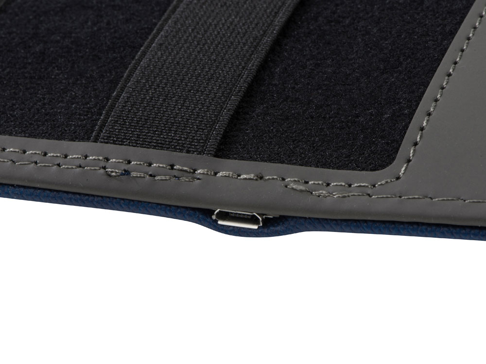 Органайзер закрывается на кнопку, имеет фиксирующие резинки для проводов и других мелочей, а также большой карман, отсек для паспорта и 4 — для карточек. Для проводной зарядки предусмотрен встроенный провод.