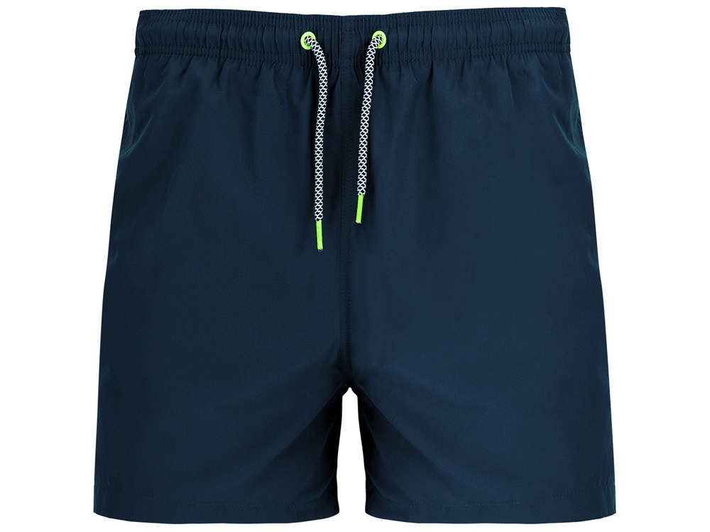 Плавательные шорты с двумя боковыми карманами. Эластичный пояс с регулируемым шнурком и контрастными металлическими люверсами. Задний карман с люверсом.