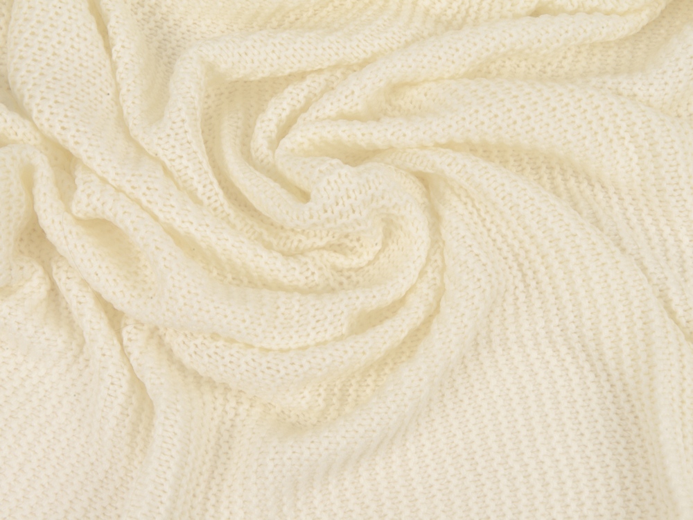 Плед, связанный из прочной акриловой пряжи, согреет в любую погоду.