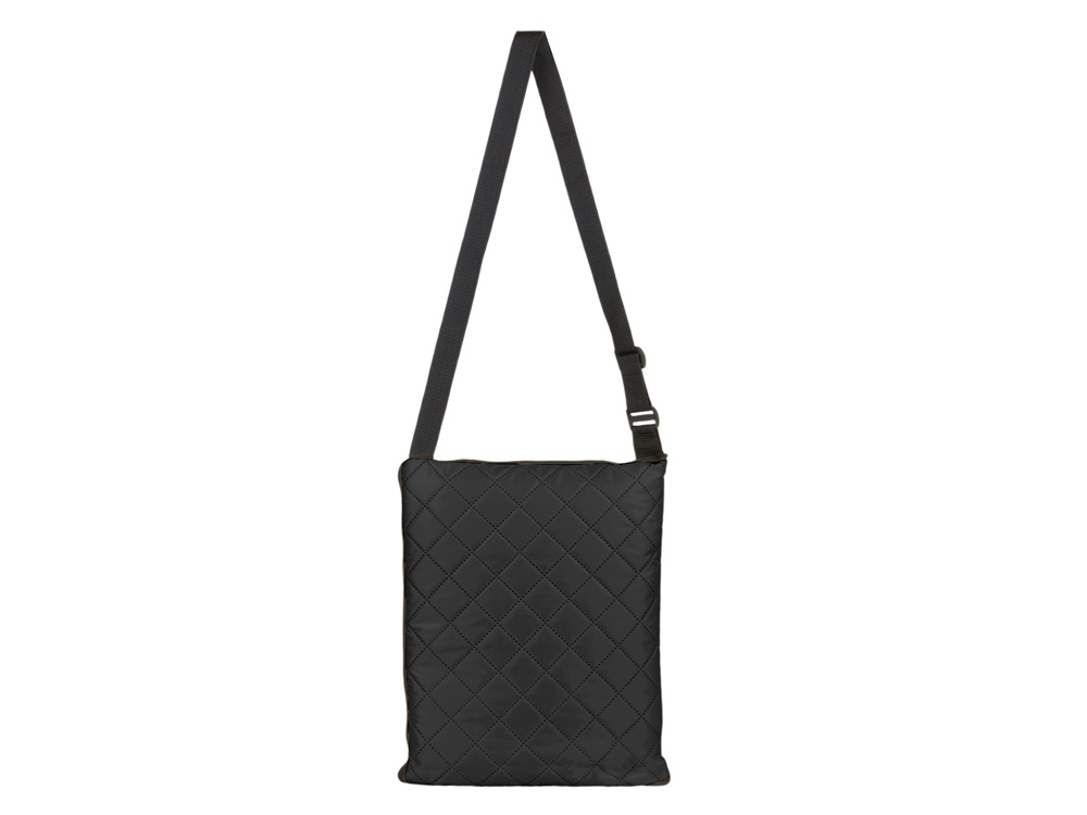 Двухсторонний плед с водоотталкивающим покрытием с одной стороны и мягким флисом с другой. Складывается в сумку на плечо и фиксируется с помощью молнии. В собранном виде имеет регулируемый по длине ремень для переноски и наружный карман для мелочей.