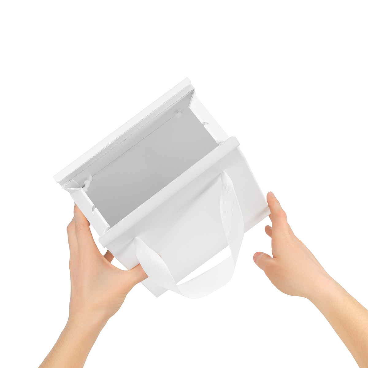 Подарочная коробка-пакет универсальная малая, белая можно заказать в нашей компании по самой доступной цене от 553 рублей.