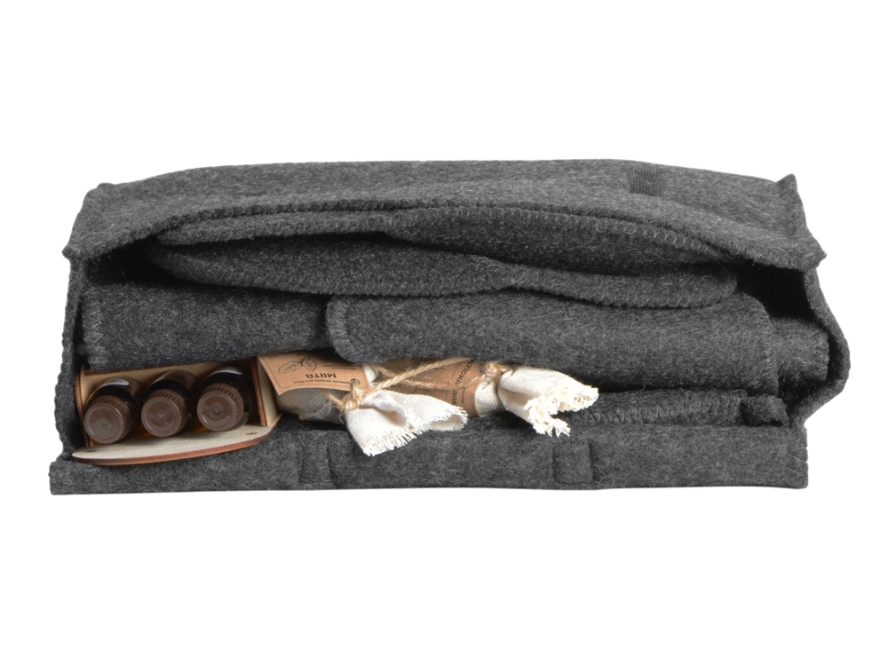 Банный набор Healing – идеальный выбор для тех, кто ценит качественный отдых и стремится к расслаблению и восстановлению в атмосфере традиционной русской бани. Выполненный в благородном графитовом цвете, набор сочетает стиль и функциональность, а его комплектация позволяет насладиться всеми этапами банного ритуала. Материал: войлок (30% шерсть, 70% полиэфир) – обеспечивает теплоизоляцию и комфорт, устойчив к воздействию влаги и температур. Цвет: графит, нейтральный и стильный оттенок, подходящий для любого интерьера. Комплектация: Портфель – удобный и стильный чехол для хранения и переноски всего набора. Запарка с мятой – добавит свежий аромат и усилит оздоровительный эффект парной. Это настой, которым поливают камни в банной печи или для запарки банных веников. Фитосбор с успокаивающим эффектом – травяной сбор для запарки, который помогает расслабиться и снять напряжение. В составе душица, мята, мелисса и репешок. Набор из трех аромамасел: Пихта – добавляет хвойный, освежающий аромат. Мята – помогает расслабиться и снимает усталость. Апельсин – поднимает настроение и добавляет нотку свежести. Масла расположены на деревянной фанерной подставке. Коврик – обеспечивает комфортное положение для ног в парной, защищая от перегрева. Шапка – традиционный банный аксессуар, защищающий голову от перегрева. Тапочки – лёгкие и удобные, идеально подходят для передвижения по парной. Рукавица – необходимый элемент для безопасного обращения с горячими предметами. Рекомендуется ручная стирка при 30°C с использованием специальных средств для шерсти или мягкого мыла.