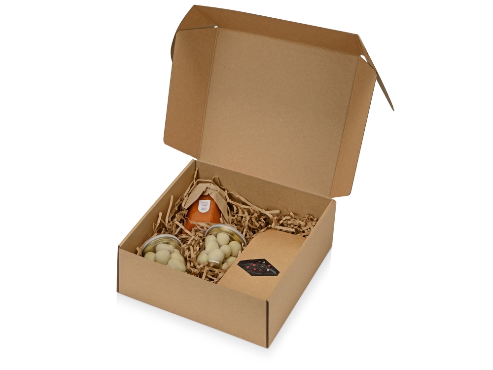Комплектность: чай черный 95г, клубника в йогуртовой глазури 120г, малина в йогуртовой глазури 115г, крем-мёд с ягодами годжи 250г