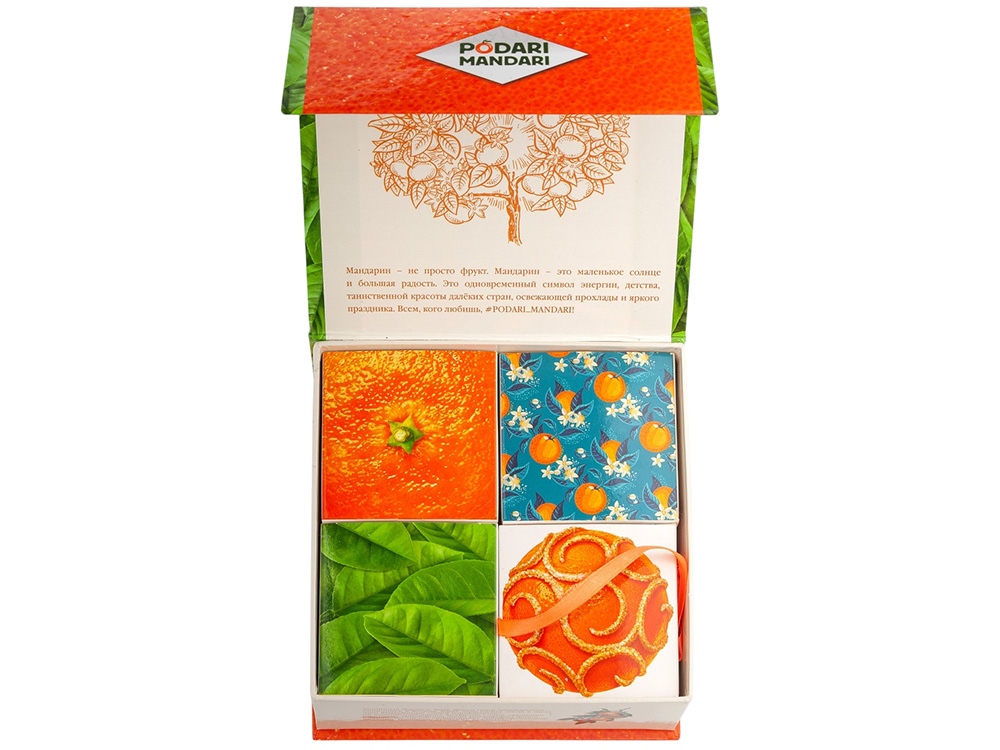 Набор представляет собой метафору мандарина – одного из главных символов Нового года.