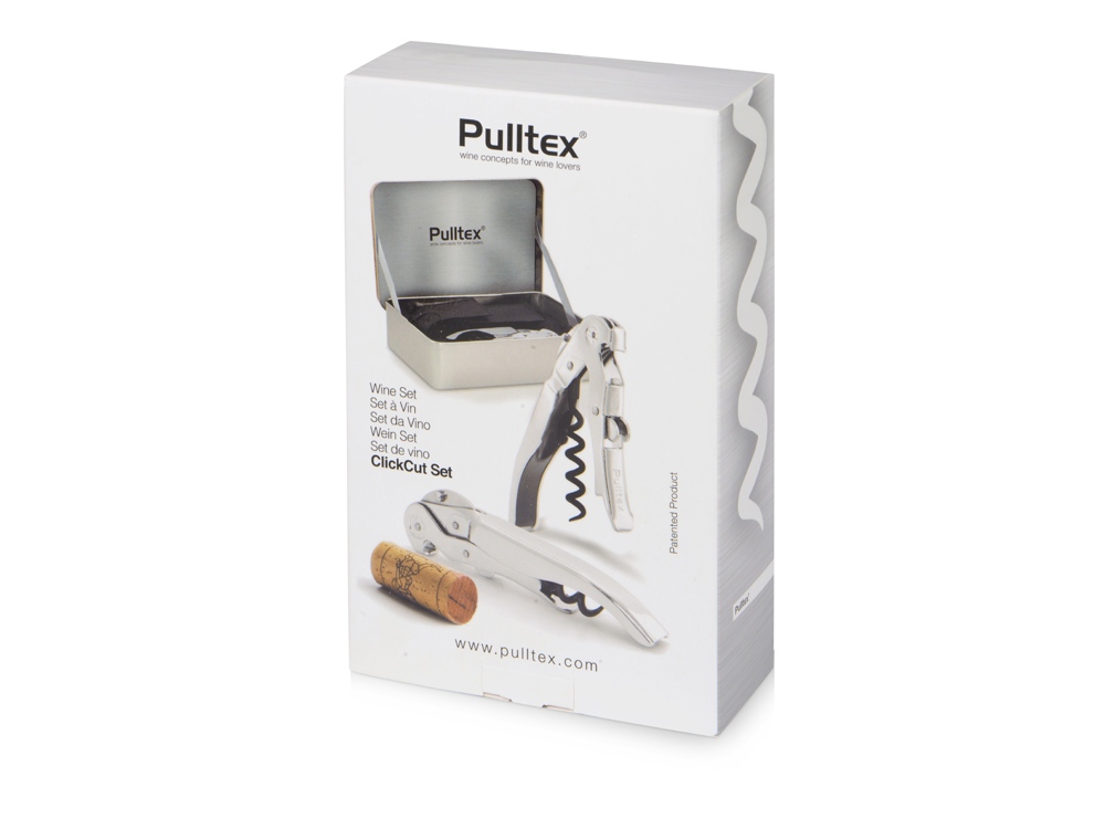 Готовое подарочное решение - это набор ClickCut Set от Pulltex. Он состоит из универсального штопора, футляра из натуральной кожи и подарочной металлической коробки с имитацией деревянного покрытия на внешней стороне. Штопор имеет запатентованную систему двойного рычага, что позволяет извлечь пробку с легкостью и не повреждая.