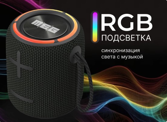 Особенности: это не просто колонка, это ваш музыкальный компаньон, который улучшит каждую встречу с друзьями, каждую прогулку и каждое мгновение отдыха; RGB подсветка; IPX7 влагозащита; режим TWS
