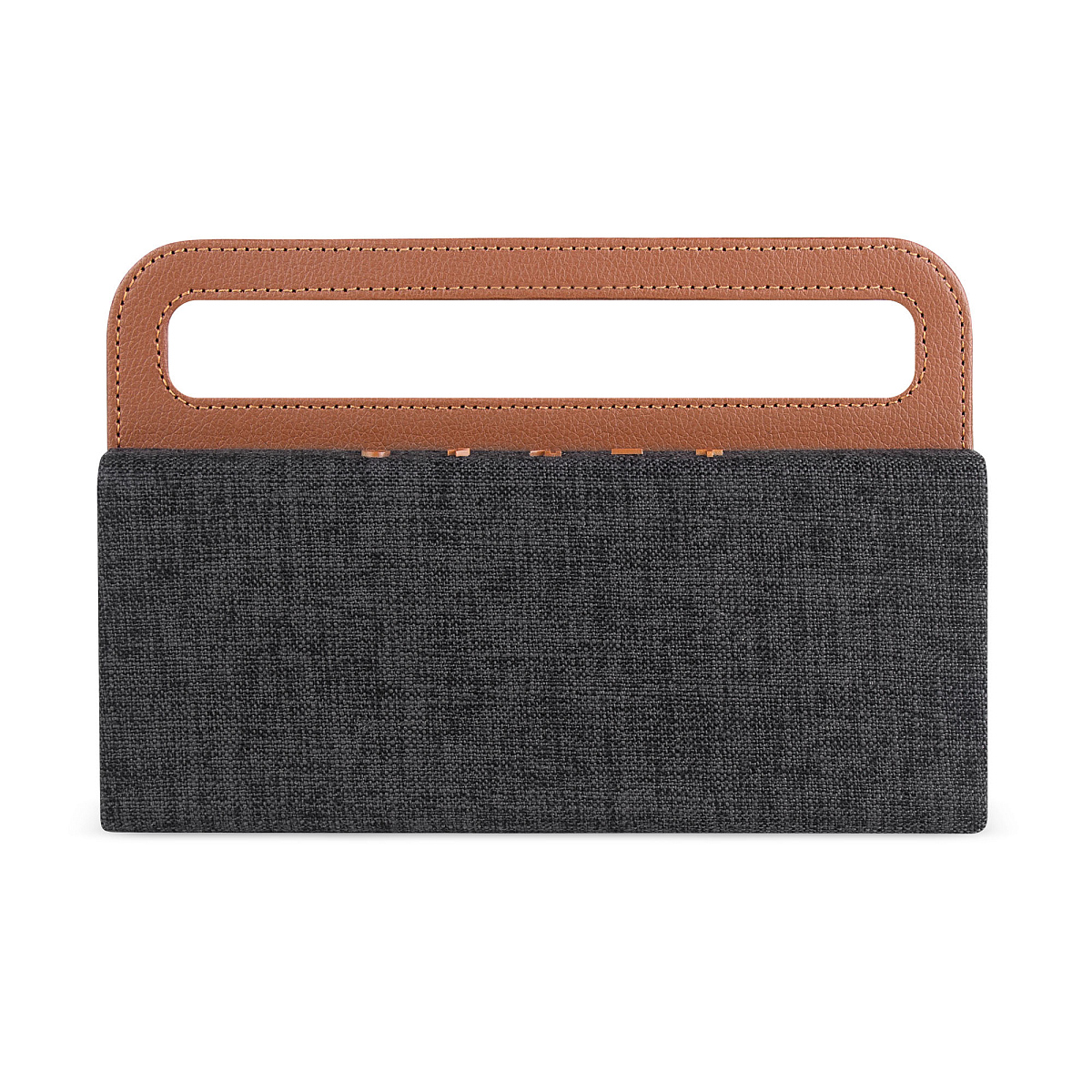 Особенности: элегантный дизайн: отделка из текстиля и эко-кожи, использование профессионального DSP обеспечивает полноценное и насыщенное звучание, глубокий насыщенный бас, воспроизведение музыки через аудиовход, совместима со всеми популярными устройствами с поддержкой Bluetooth, прием звонков с телефона, емкий аккумулятор