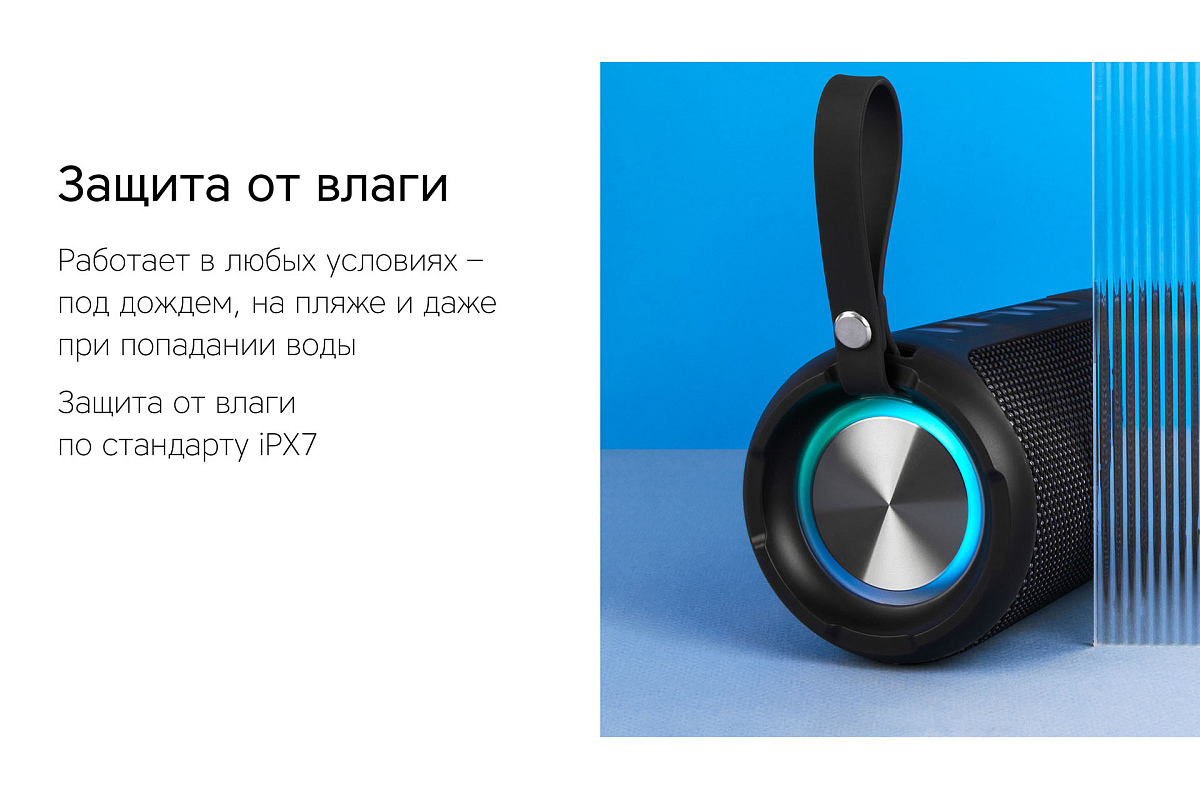 Особенности: мощность звука 30 Вт; защита от воды по стандарту IPX7; светодиодная подсветка; поддержка режима True Wireless Stereo (TWS); встроенный эквалайзер; беспроводная: совместима со всеми популярными устройствами с поддержкой Bluetooth; воспроизведение аудио с microSD карт и через аудиовход; громкая связь; профессиональный DSP обеспечивает чистое звучание
