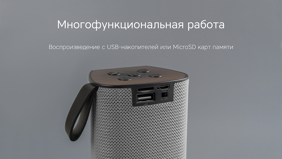 Особенности: поддержка режима True Wireless Stereo (TWS); мощность звука 6 Вт; FM радио; текстильная отделка; воспроизведение аудио с microSD карт и USB-носителей; прием звонков с телефона; громкая связь; совместима со всеми устройствами с поддержкой Bluetooth