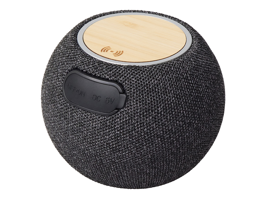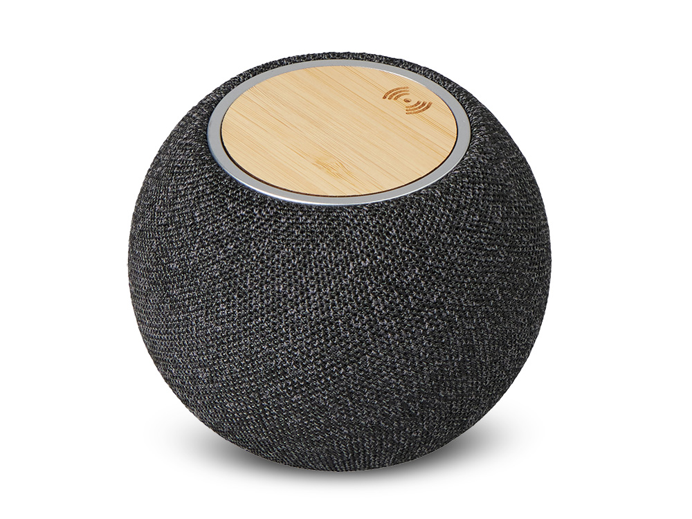 Bluetooth-колонка мощностью 5 Вт обеспечивает качественное звучание для средней комнаты или офиса. А верхняя панель из бамбука с беспроводной зарядкой позволяет подзаряжать смартфон, просто положив его на колонку. Зарядка работает при подключении кабеля — удобно и практично!
