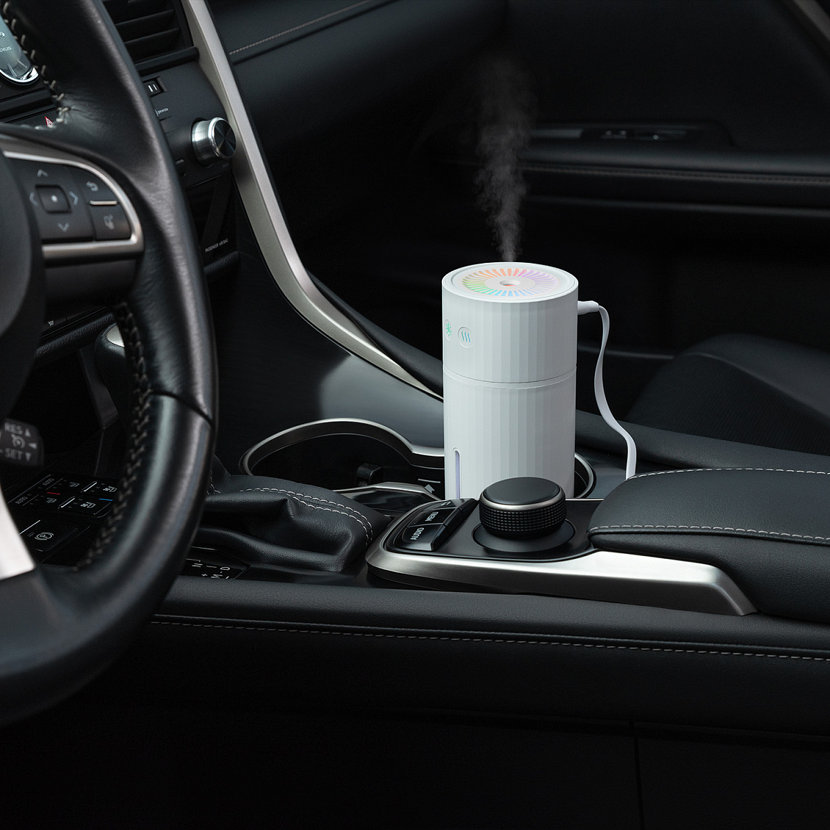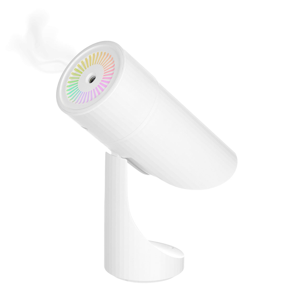 Портативный увлажнитель воздуха со встроенным аккумулятором 1000 mAh и функцией радужной LED-подсветки. Технология нано-распыления эффективно снижает сухость воздуха и электронное излучение, что устраняет статическое электричество. Конструкция с наклоном позволяет сделать поток воздуха направленным. Специальное покрытие корпуса OIL PAINT улучшает визуальные и тактильные характеристики изделий. Подходит для использования в автомобиле. Объем резервуара для воды - 260 мл.