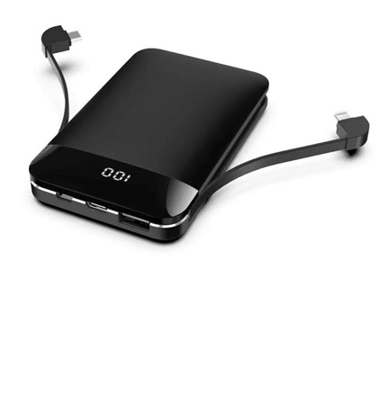 Особенности: компактный, стильный, алюминиевый внешний аккумулятор с цифровой индикацией заряда и с двумя встроенными проводами Type-C и Lightning, одновременная зарядка до 3-х устройств