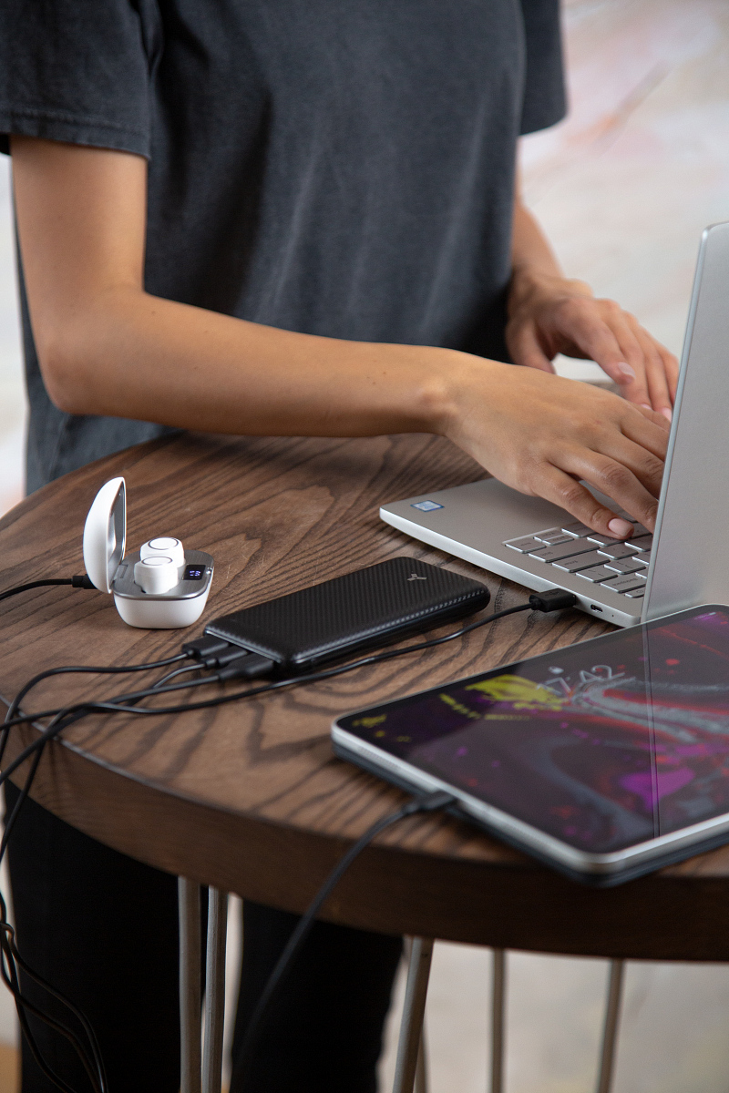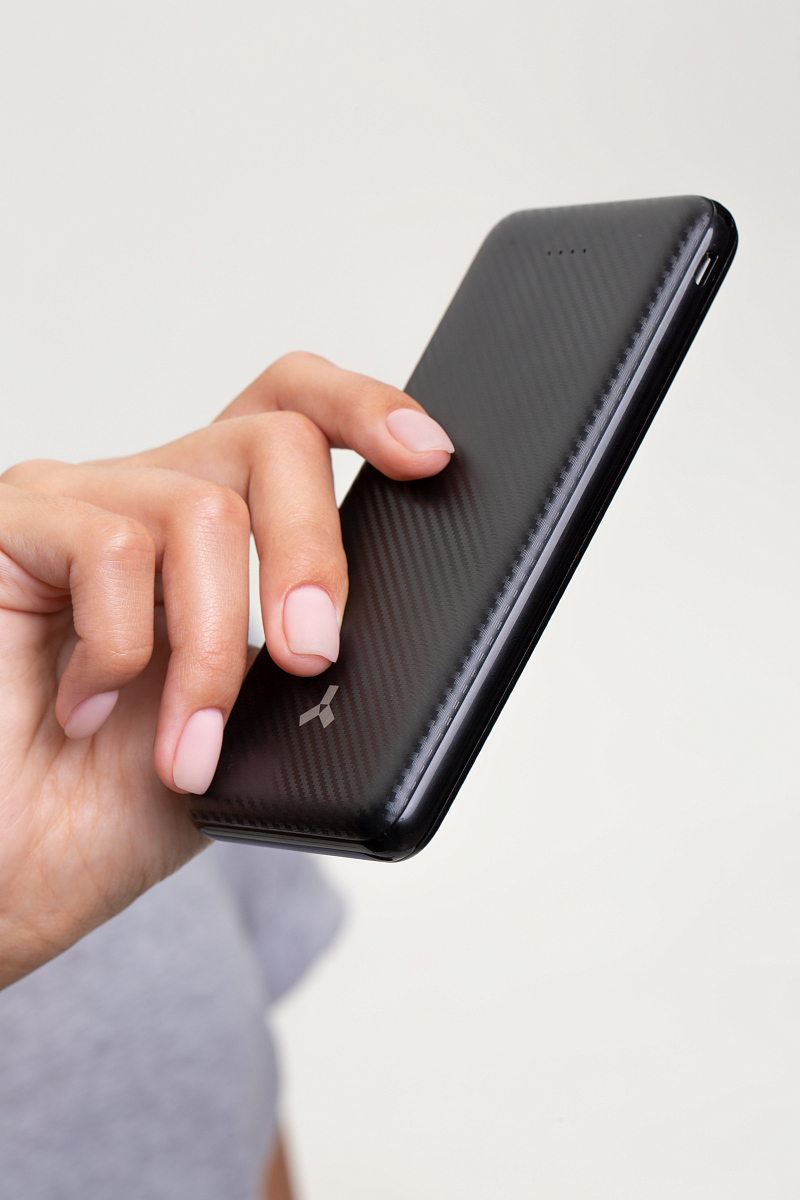 Особенности: внешне Powerbank Midnight 10P выполнен в классическом ключе – чёрный прямоугольник в строгом, но элегантном стиле; отлично вписывается в антураж деловых людей; энергоёмкость аккумулятора в 10 000 мАч в среднем рассчитана на 5 зарядок смартфона или 20 для беспроводных наушников; устройство легко помещается в сумку и не утяжеляет её; зарядка осуществляется через входные порты Micro USB и Type-C наиболее популярные среди современных гаджетов форматы