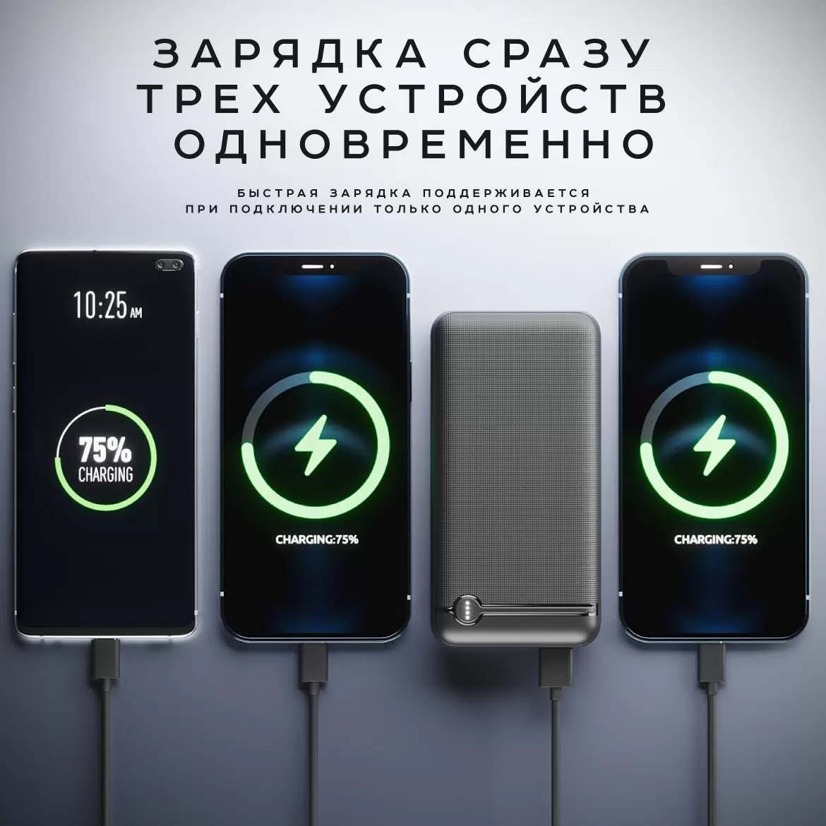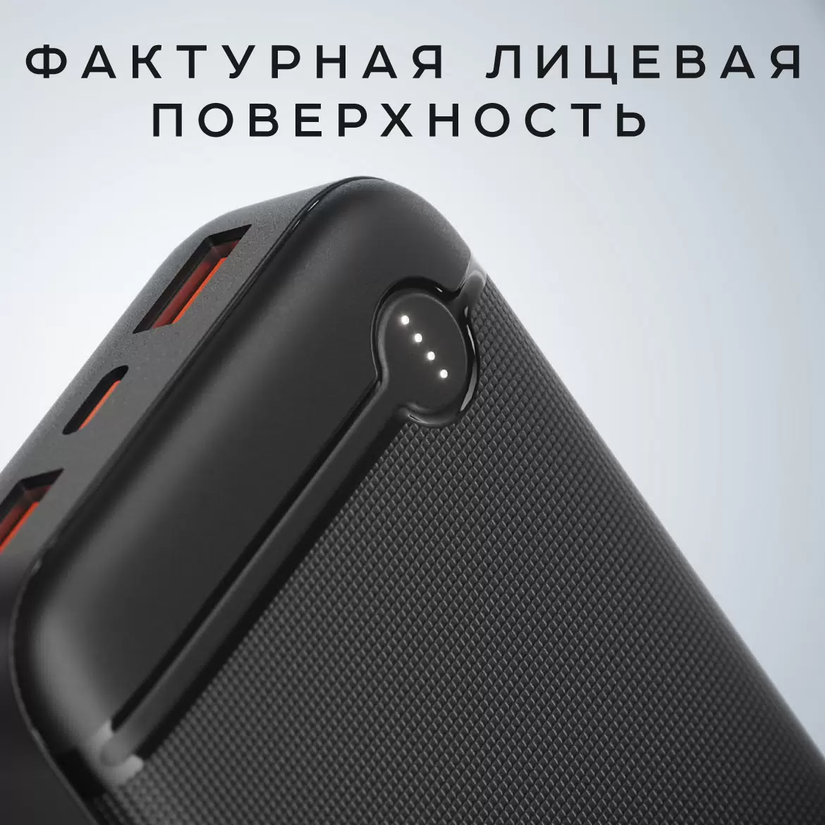 Особенности: быстрая зарядка с выходной мощностью до 20Вт обеспечит быструю зарядку вашего устройства; выполнен в стильном и практичном черном цвете с фактурой на лицевой поверхности, что делает его приятным на ощупь и устойчивым к царапинам