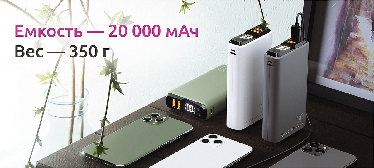 Особенности: LED дисплей с цифровым индикатором остатка заряда, Olmio QS-20 поддерживает быструю зарядку Quick Charge 3.0 на вход и выход, функция Power Delivery с помощью которой пауэрбанк QS-20 может передавать через разъем Type-C ток с максимальной выходной мощностью 18 Ватт, что соответствует требованиям мощных современных смартфонов и даже некоторых ноутбуков