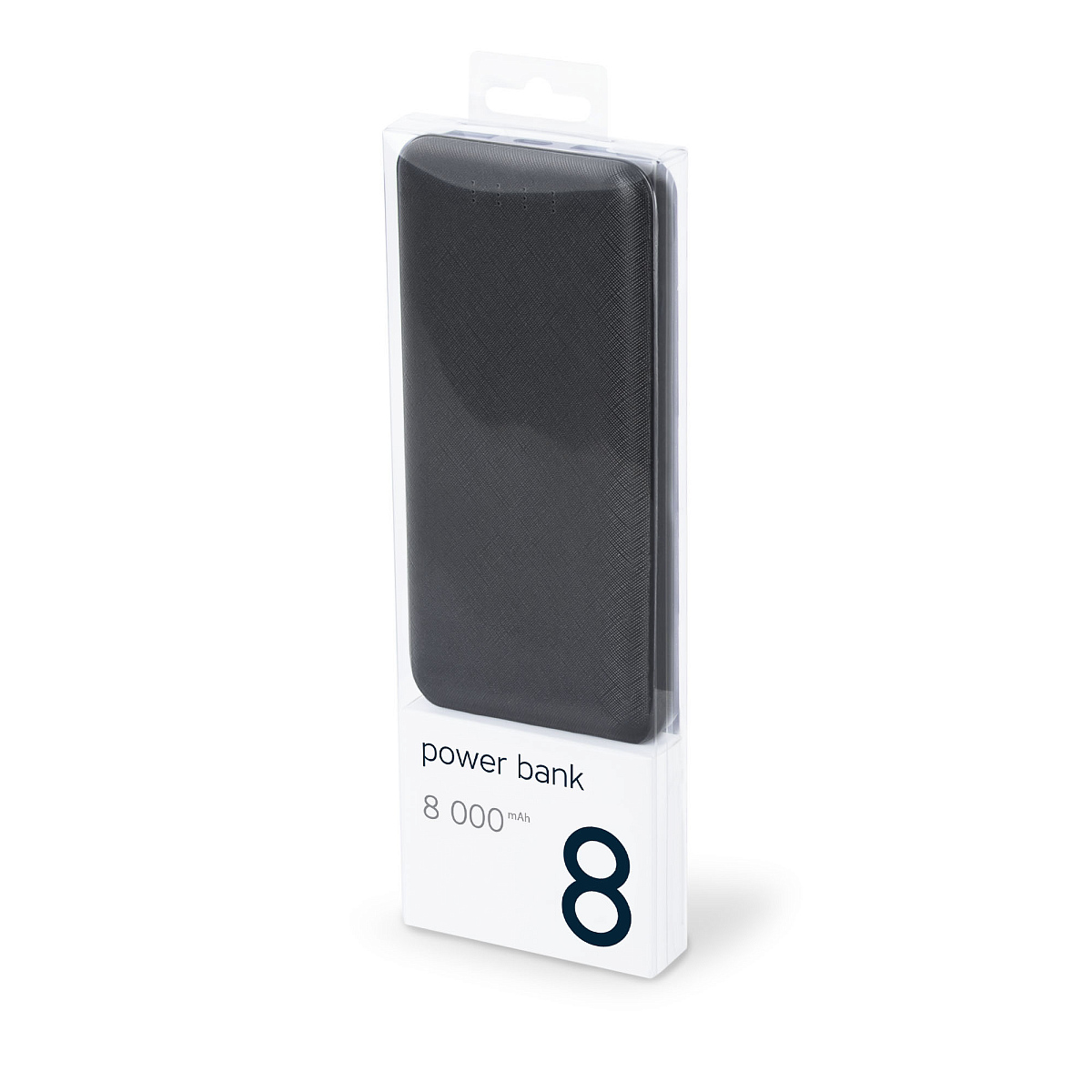 Особенности: бюджетный павербанк 8000 мАч; зарядка от Type-C кабеля; литий-полимерный аккумулятор; два USB выхода, зарядка двух устройств одновременно; LED индикатор оставшегося заряда