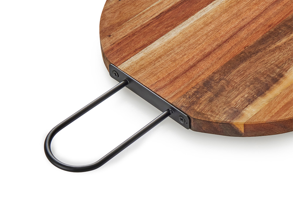 Круглая доска Кира из массива акации — не просто кухонная утварь, а настоящее украшение для вашего рабочего пространства. Благодаря твердости древесины и пропитке специальным маслом, поверхность устойчива к появлению глубоких царапин и впитыванию запахов, способна сохранить безупречный вид долгие годы. Удобная металлическая ручка позволяет легко перемещать доску по кухне, а после использования — отправить её на крючок для компактного хранения. Диаметр 23 см идеально подходит для нарезки овощей, зелени, сыра или эффектной сервировки закусок перед подачей на стол. Подарите себе гармонию функциональности и природной эстетики с доской Кира.