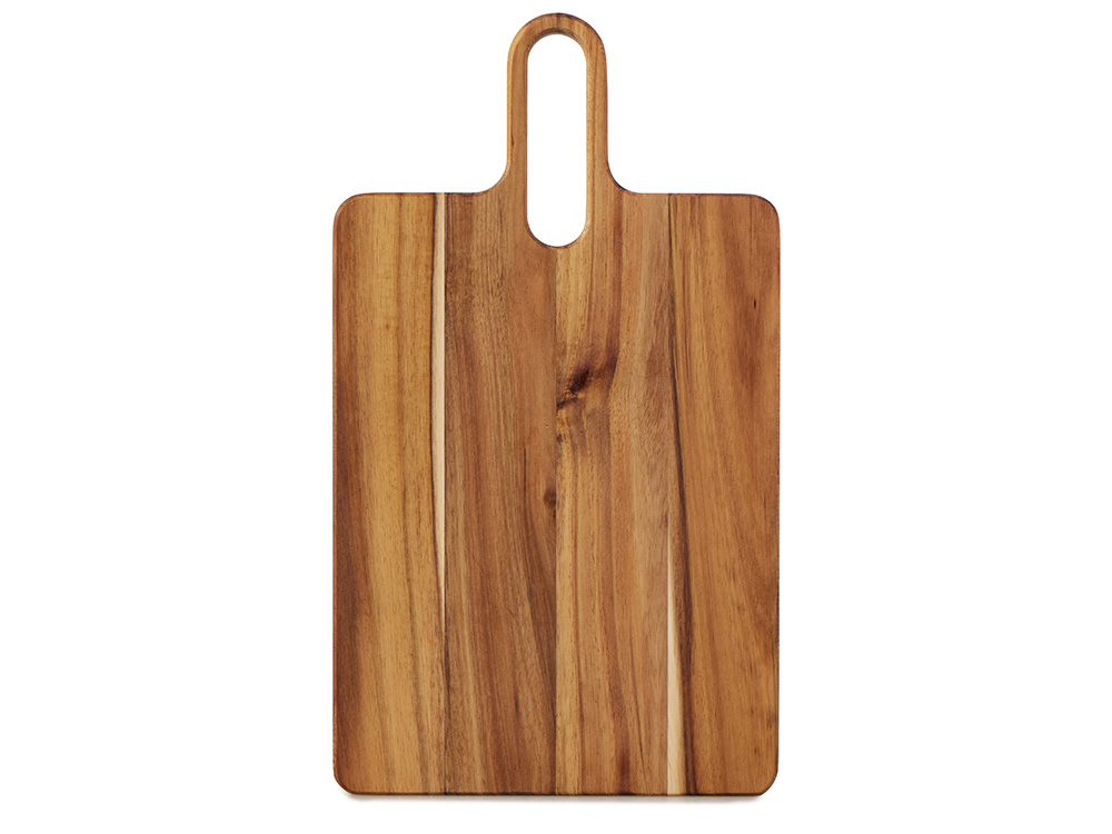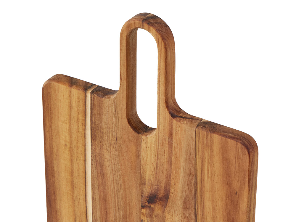 Разделочная доска Вэй выполнена из массива акации — прочного и влагостойкого материала, который устойчив к появлению царапин и деформации. Благодаря плотной структуре древесина не впитывает запахи и соки продуктов, что делает доску гигиеничной и безопасной в использовании. Благодаря удлиненной ручке доска удобно лежит в руке, а большое отверстие позволяет с легкостью повесить доску на крючок для хранения.