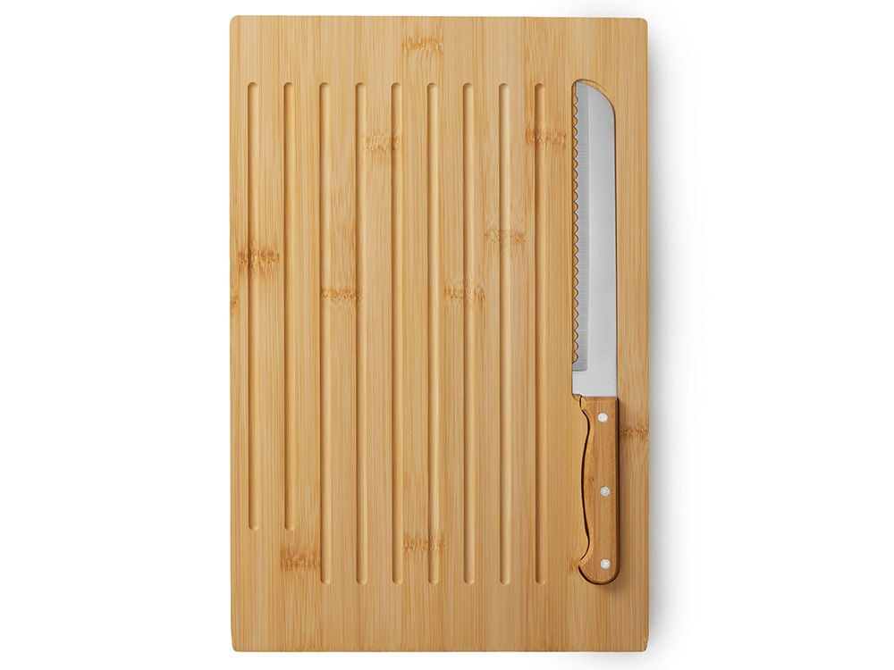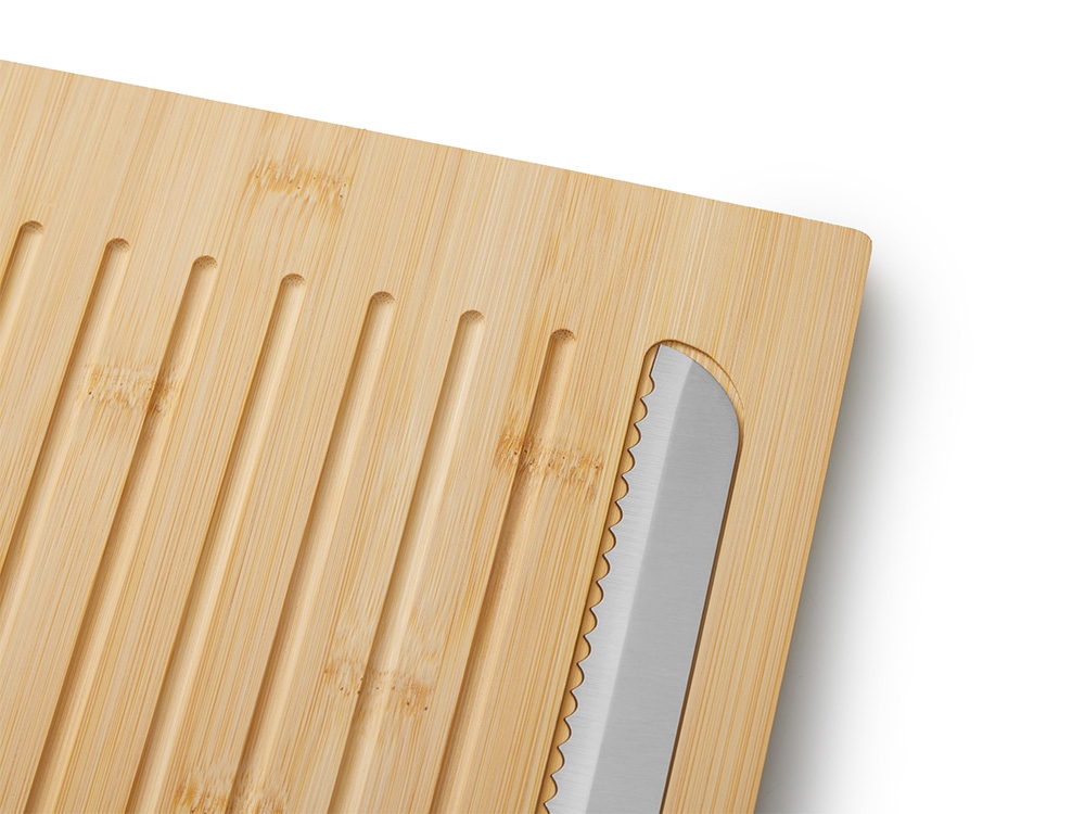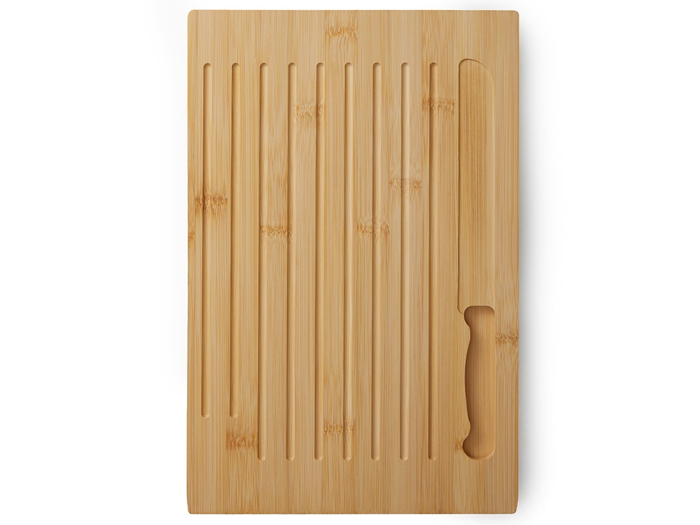 Доска Круста с хлебным ножом — идеальный дуэт для нарезки хлеба. На поверхности доски предусмотрены специальные выемки для сбора крошек, что делает нарезку удобнее, сохраняя поверхность вокруг идеально чистой. Нож удобно хранится прямо в доске: для него вырезано аккуратное посадочное место, чтобы инструмент был всегда под рукой. В углу доски предусмотрена специальная зона для нанесения логотипа — это делает набор идеальным корпоративным подарком. Бамбук — легкий, прочный и экологичный материал, который не впитывает запахи.