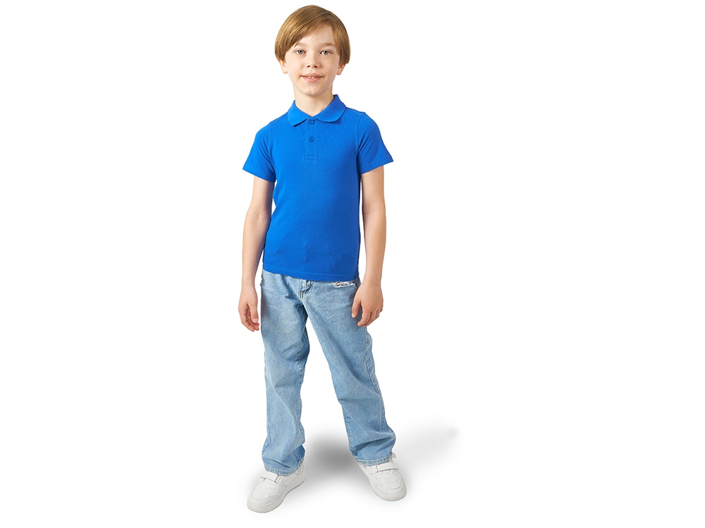 Детская рубашка поло First. Воротник 1х1. Обшивка внутри воротника. Мужская и детская модели с 2 пуговицами, женская - с 4 пуговицами. Пуговицы с гравировкой в тон. Пике, 100% хлопок. 160 г/м².