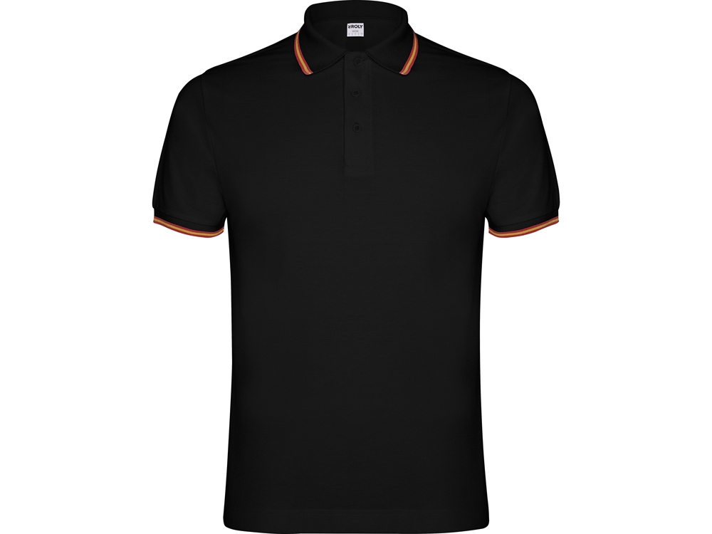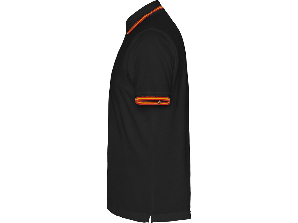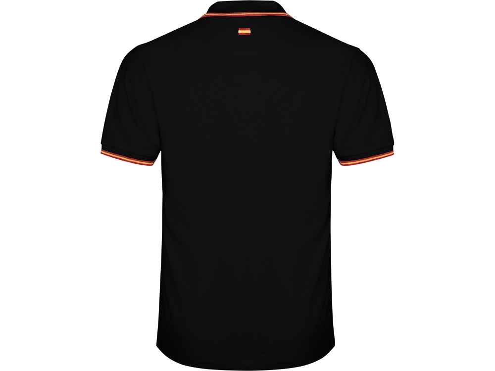 Рубашка поло с коротким рукавом и планкой на 3 пуговицы. Контрастные полоски по манжетам и воротнику. Вышивка в виде флага на спинке