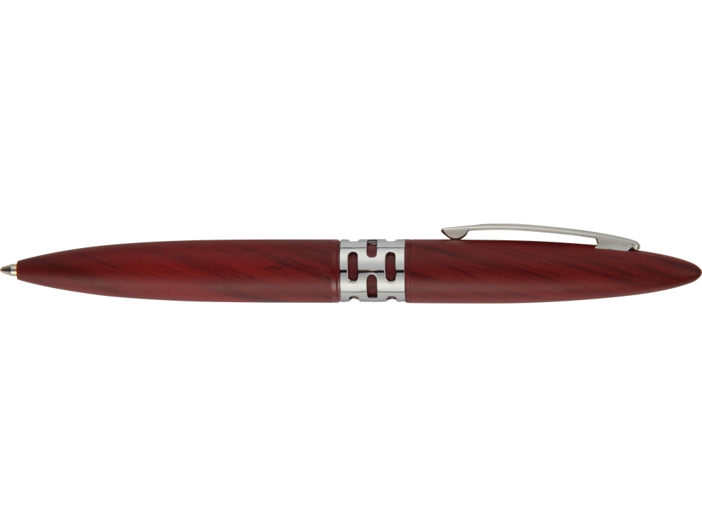 Стильная пластиковая ручка с чёрными чернилами с отделкой под дерево будет приятным промо-сувениром, который походит как для выставок, так и для конференций.
