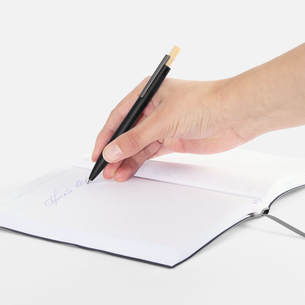 Шариковая ручка Bambink в алюминиевом корпусе с матовым покрытием и бамбуковой кнопкой. Строгая форма корпуса и сочетание трех разных материалов делают ручку одновременно лаконичной и нескучной.
