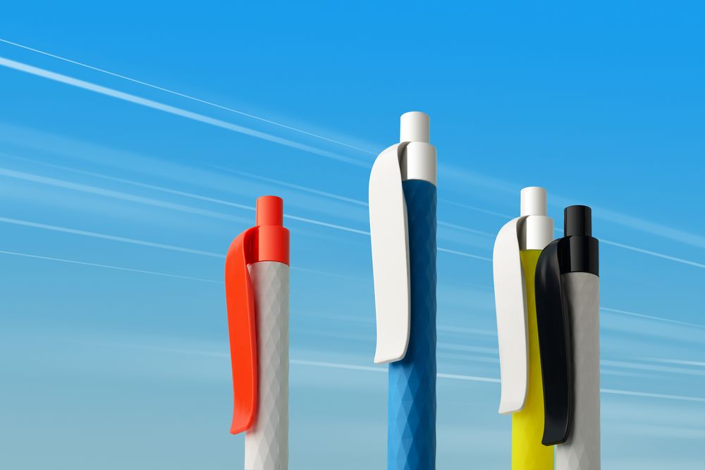 Ручка, интересная не только на вид, но и на ощупь. Гладкий изогнутый клип контрастирует с рифленым корпусом, дополнительно выделяя логотип компании.