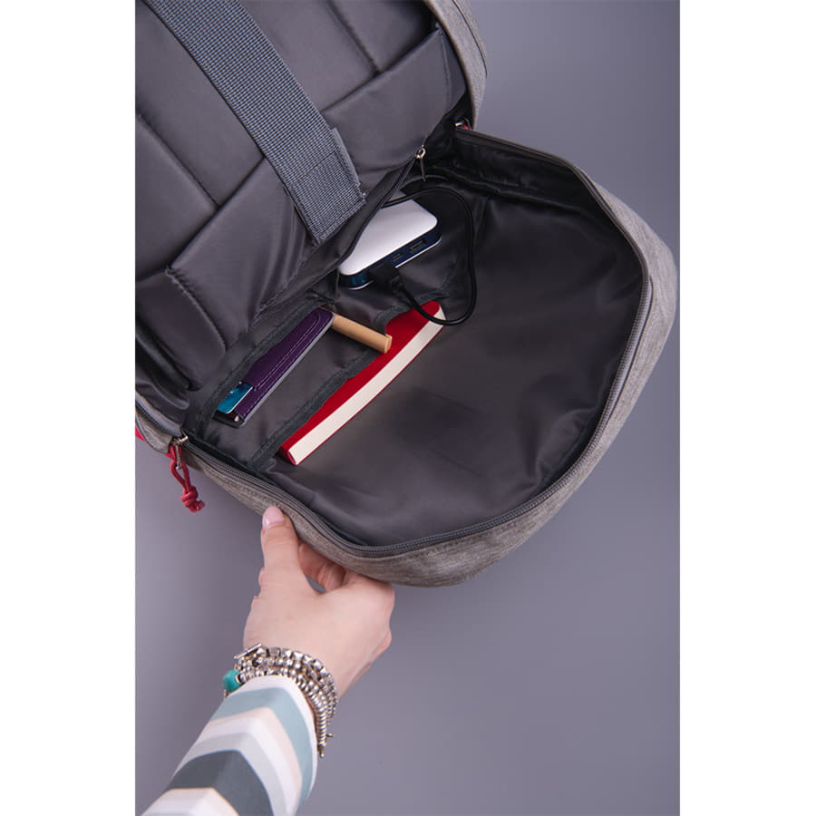 BEAM MINI - мини версия уже ставшего культовым рюкзака BEAM.MINI как стиль жизни! Основной цвет: близкий к Pantone 421 C, нижняя часть: цвет, близкий к Pantone 186 C · Основная ткань: 100% полиэстер, подкладка: 100% полиэстер· Объём: 8 литров· Вмещает ноутбук 15,6" Описание:· Прочный и водоотталкивающий материал· Основной отдел на молнии с двумя бегунками и планкой, защищающей от попадания влаги внутрь· Наружный удобный карман -органайзер на молнии· Внутри укрепленный отдел для ноутбука с защитной тесьмой на липучке· USB разъем для подзарядки вашего устройства (внутри рюкзака в специальном кармане на молнии расположены кабель для соединения с power bank и провод с разъемом мини-джек 3,5 мм для наушников)· Эргономичные лямки и ручка рюкзака· Лямки прошиты дополнительными стропами в быстро изнашиваемых местах, которые можно отрегулировать по длине и зафиксировать пластиковыми крепежами· Упаковка: прозрачный пакет