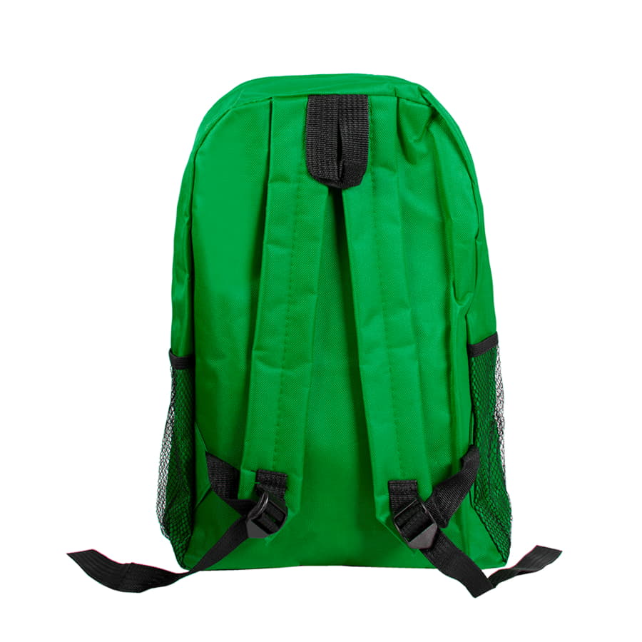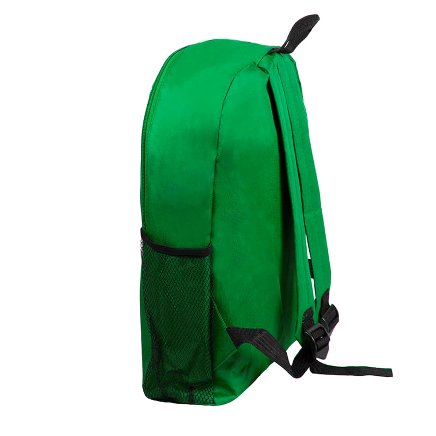 Цвет, близкий к Pantone Green 347 С Легкий промо-рюкзак из прочного полиэстера 600D с одним основным отсеком и внешним карманом на молнии. Два боковых кармана из сеточки на резинке добавят места для бутылочки с водой или хранения мелких предметов. Регулируемые мягкие лямки помогут сделать рюкзак с вещами почти невесомым.