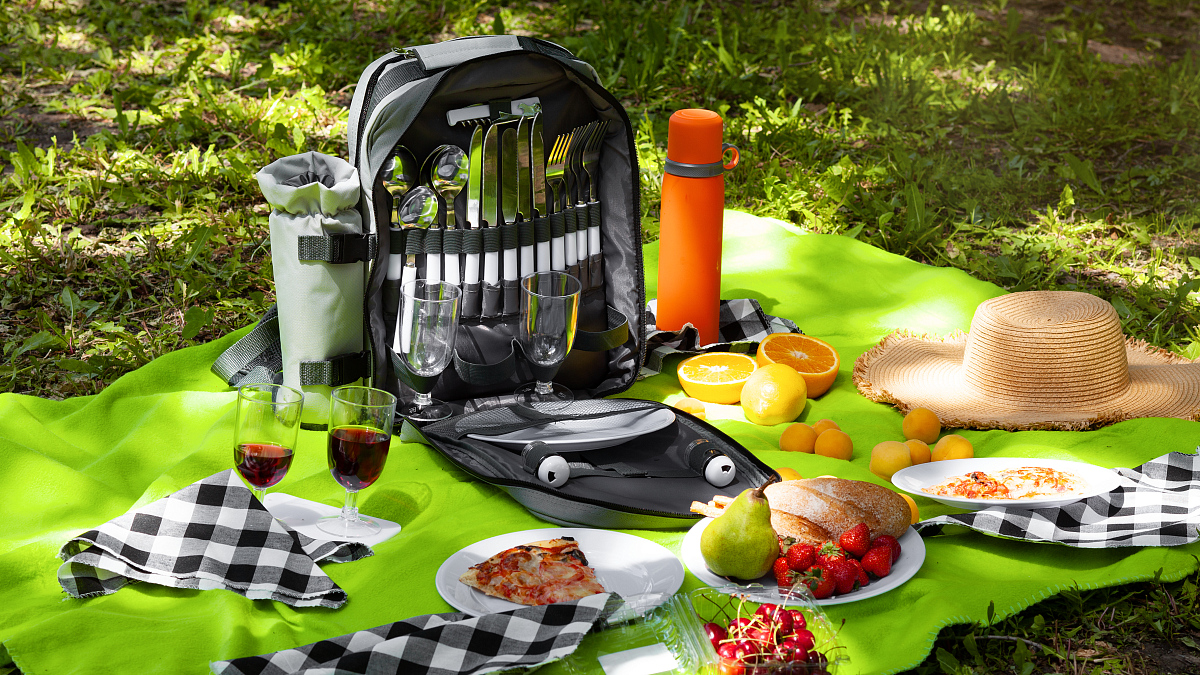Рюкзак для пикника "Дания" с комплектом приборов на 4 персоны. Большое холодильное отделение и съемный кулер для термоса (бутылки вина).