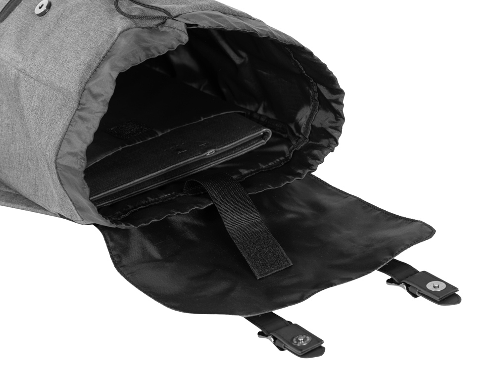 Легкий и вместительный рюкзак закрывается с помощью двух магнитов и стяжки-шнурка. Внутри расположен карман для ноутбука, который фиксируется эластичной лентой на липучке. Снаружи - карман на молнии. Лямки регулируютcя по длине.