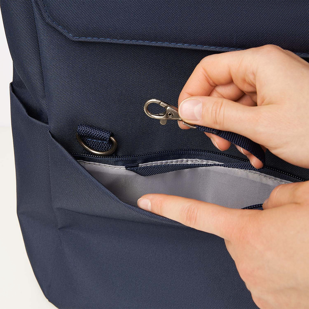 Кнопки по бокам основного отделения помогают регулировать объем. Багажная лента, мягкие плечевые ремни с дышащей подкладкой и карабины внутри кармана и снаружи делают Marco еще более функциональным и удобным для повседневного использования.