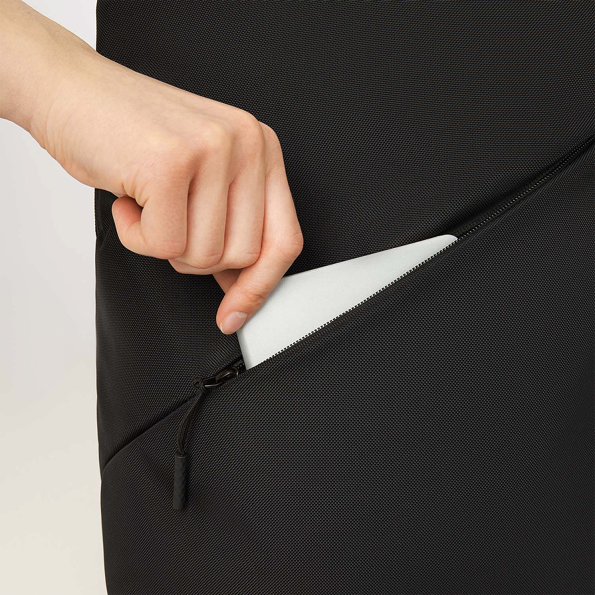 Основное отделение с карманом для ноутбука (до 15,6") и фиксатором на липучке - техника надёжно зафиксирована и защищена от ударов. Внешний карман на молнии подойдет для ключей, кошелька, наушников и других мелких предметов. Есть багажная лента на спинке.
