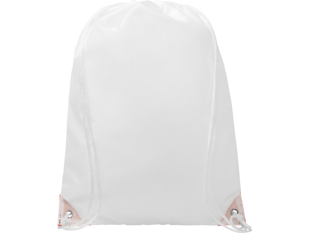 Рюкзак со шнурком и главным отделением на шнуровке белого цвета. Имеет цветные укрепленные углы. Прочность до 5 кг.