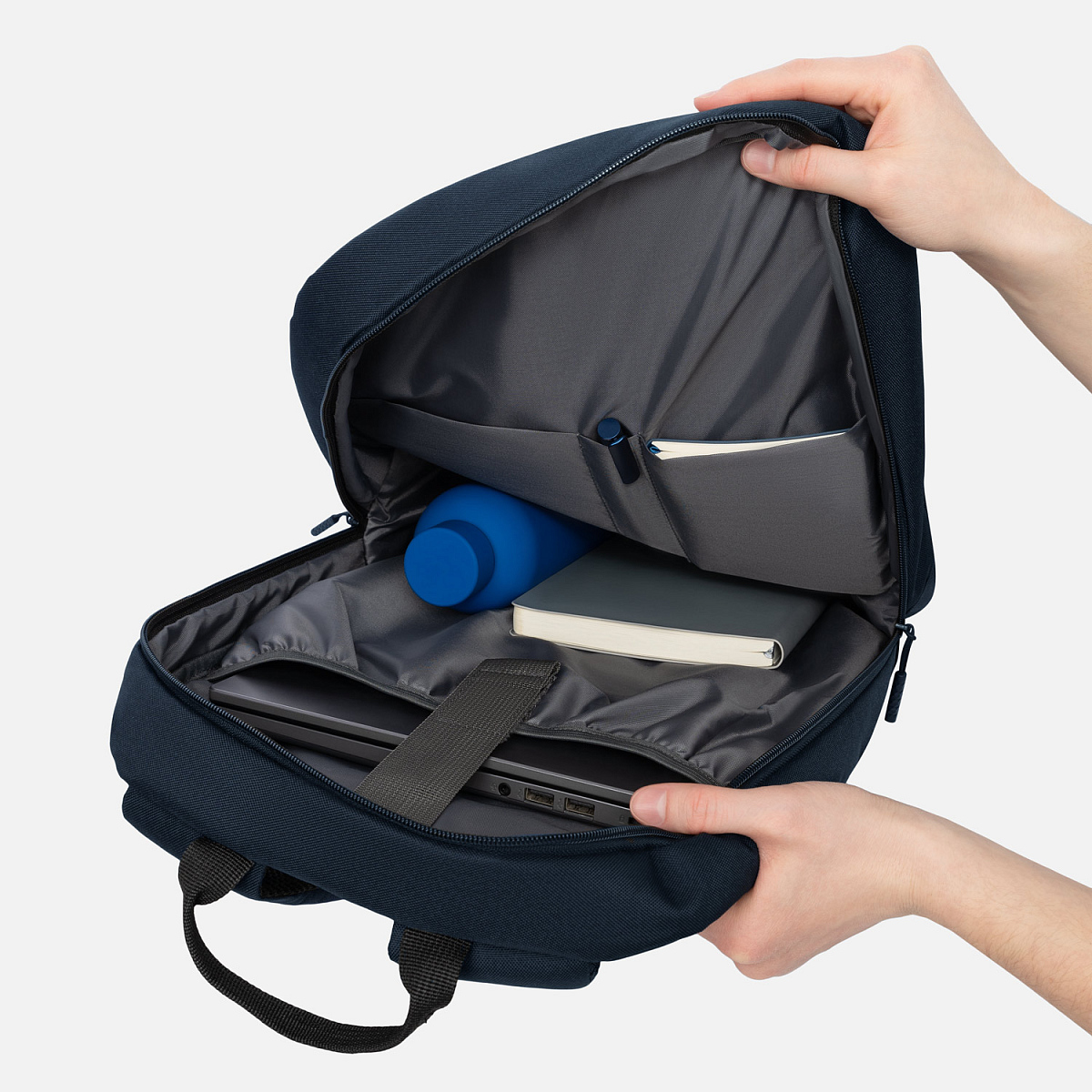 Два внутренних дополнительных кармана для мелочей и два отделения для ручек помогут организовать все необходимое, а глубокий карман во фронтальной части позволит держать под рукой самые важные вещи.
