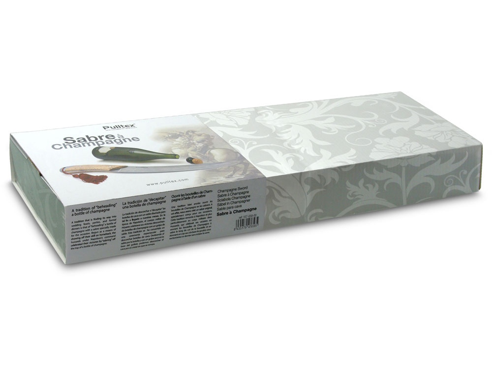 Сабраж — это необычный и очень зрелищный способ открывания шампанского, при котором горлышко бутылки не откупоривается, а сбивается вместе с пробкой. Сабля для сабража от Pulltex, испанского производителя аксессуаров для вина, создана специально для этой цели с учетом всех особенностей процесса: удобная ручка, плоское лезвие, изогнутое специально под горлышко. Рукоять выполнена из дерева, благодаря чему обеспечивается удобный хват, а кисть бордового цвета и нарядный деревянный футляр дополняют саблю, придавая ее облику торжественность.